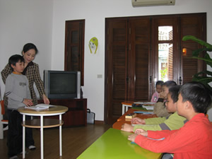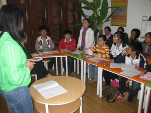 Học sinh đến Eveil rất thích tham gia hai môn học hiện là thế mạnh của trung tâm, đó là môn Đọc-Diễn thuyết và môn Tạo hình. Hai bộ môn này có liên quan chặt chẽ với nhau vì chương trình cả hai bộ môn đều triển khai theo chủ đề gắn liền với thực tiễn Tự nhiên-Xã hội trong một năm. Tuần nào cũng vậy, cứ thứ bảy, chủ nhật, tôi lại thấy trên khuôn mặt các em sự hào hứng sau một tuần học tâp ở trường để đến với Eveil. Trong lớp Tạo hình, các em chăm chú làm những cánh hoa đào. . .Khi trình bày về sản phẩm của mình, có em nói: “…bố con mua cây đào rất to nhưng hoa thì bé ạ!”. Có bé lại nói “…bố con đi mãi mới mua được một cành đào ạ!”. Xúc động nhất là khi được nghe các em bộc lộ, chia sẻ trong lớp Diễn thuyết về chủ điểm gia đình: “ tôi mong sao bố đừng về muộn để mẹ tôi không buồn…” hoặc “…tôi mong tết thật lâu để cả nhà bên nhau mà không giận nhau…”. Đã có không ít phụ huynh ngồi cùng học với con đã rơi nước mắt và nói với tôi: - Em không ngờ cháu nó lại suy nghĩ được như vậy!