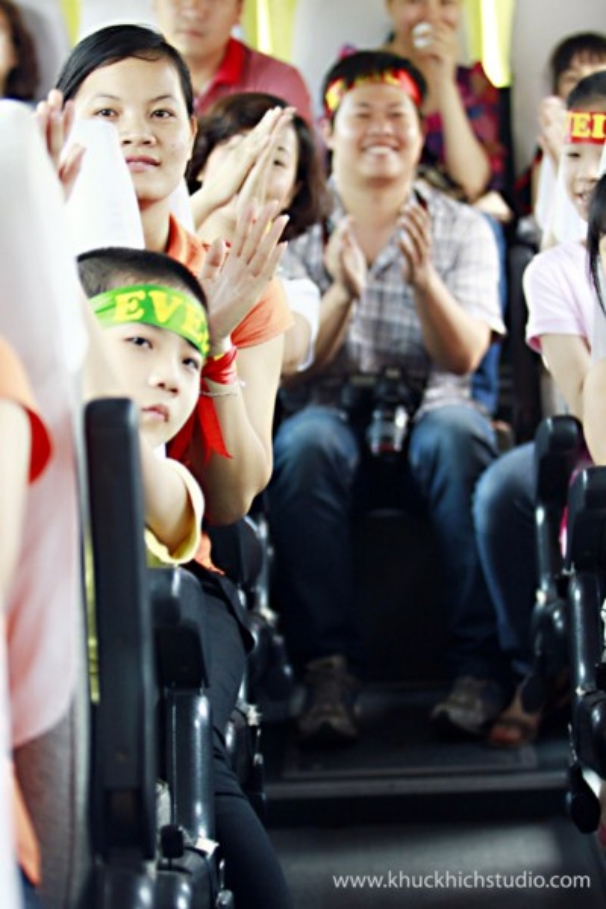 Trên xe, chúng mình được chơi rất nhiều trò chơi thú vị với chủ đề ‘’Tìm hiểu Văn hoá Dân gian’’. Chị Thanh Xuân mang đến cho chúng mình những giây phút đua tranh sôi nổi với trò «Đua Còn». Đội Xanh dẫn điểm trước nhưng Đội Đỏ lại nhanh chóng rút ngắn khoảng cách và vươn lên giành phần thắng. Anh Minh Quang cầm trên tay một chiếc hộp Cam bí ẩn, trong đó chứa đựng những câu đố thú vị về các loài vật, loài cây. Các bạn ai cũng hào hứng giơ tay, vừa bổ sung kiến thức, lại được nhâm nhi…kẹo mút. Chúng mình thích mê!